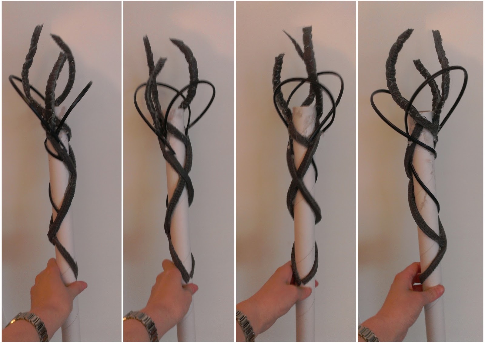Then I glued on strips of foam (the cheapest kind from Biltema) For the "branches" that are sticking out on the top I used steel wire to stiffen the shape. For the thinner details (hoops) I used a couple of electrical wire stumps.