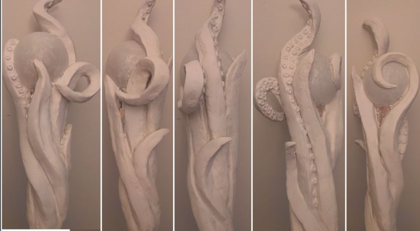 Down the length of the staff I added several details. Like Balanidae and sea stars which I made out of clay, and different sea weed made out of hot glue.